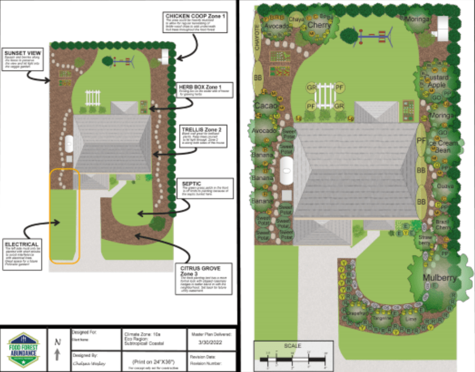 Your Starter, Family, Family+Friends, Community or Custom sized Food Forest Landscape Design will be designed with consideration of your climate, planting zone, topography, space, as well as to the beauty, functionality, and abundance you wish to have. The pricing is based on the desired size of your food forest design space (not your total lot size).